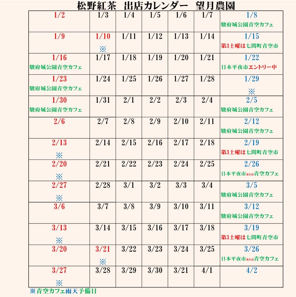 [1/8(土)16,23,30(日)] 駿府城公園 青空カフェ 10:00~16:00