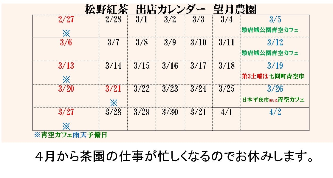 - 2022.03.13 お知らせ:今月の出店