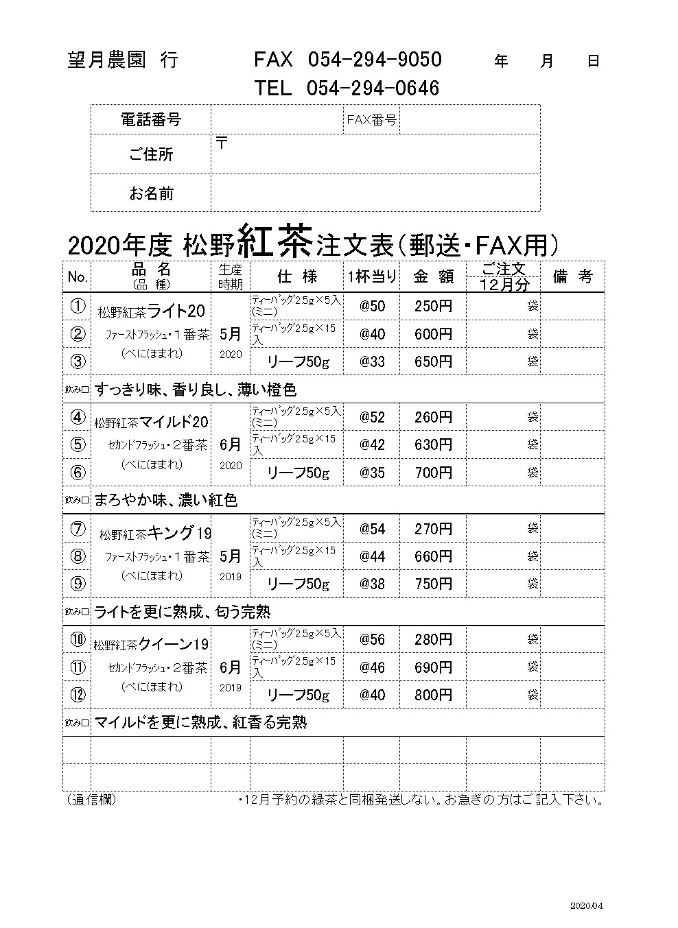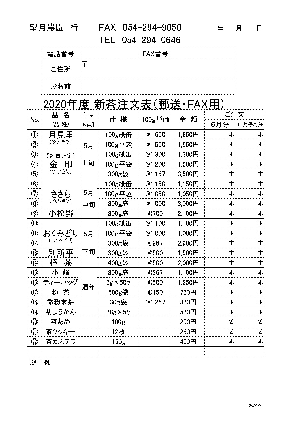- 2020.04.13 更新: 松野の深蒸し茶 に 新茶注文表のリンク を追加、 ご注文について に 新茶注文表